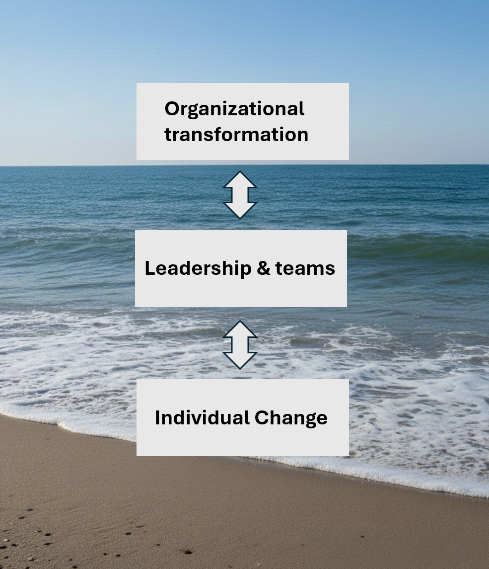 We cover the whole change spectrum, from organisational change, to leadership and team optimization and individual change to master chronic stress. Profound change and transformation that stick.